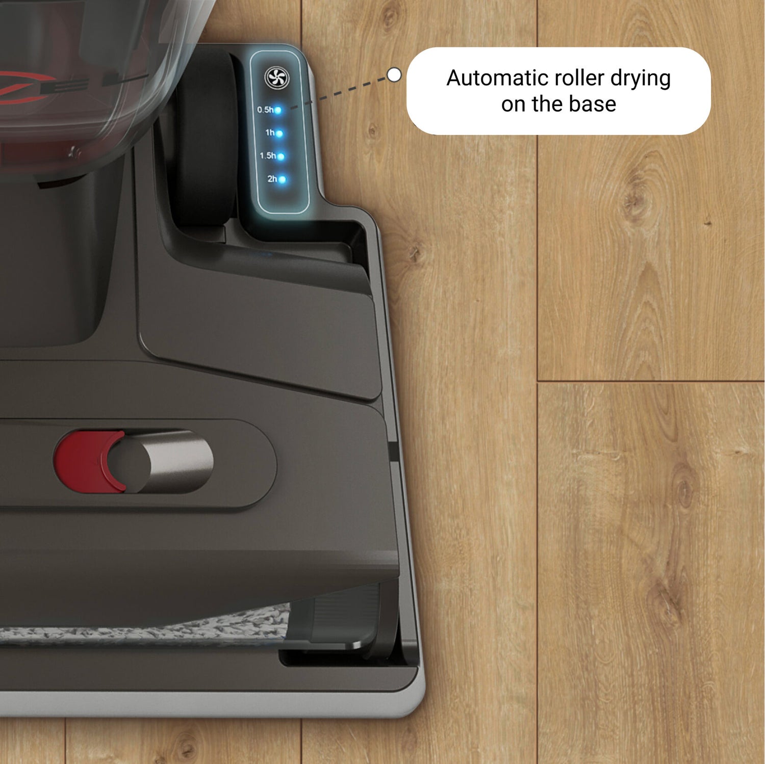 Now the roller does not need to be removed after self-cleaning and dried separately from the vacuum cleaner. It will be dried automatically on the base.