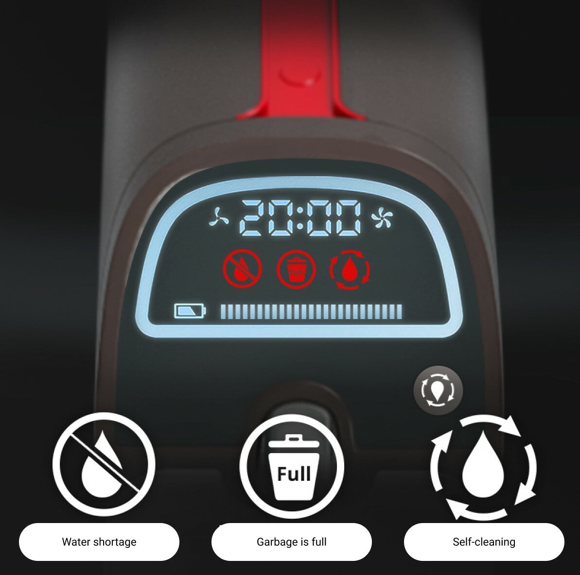 If something goes wrong, Atvel F16 Ultimate will promptly report its status. Information will appear on the LCD display: it will show the level of charge, lack of water or a full waste container.