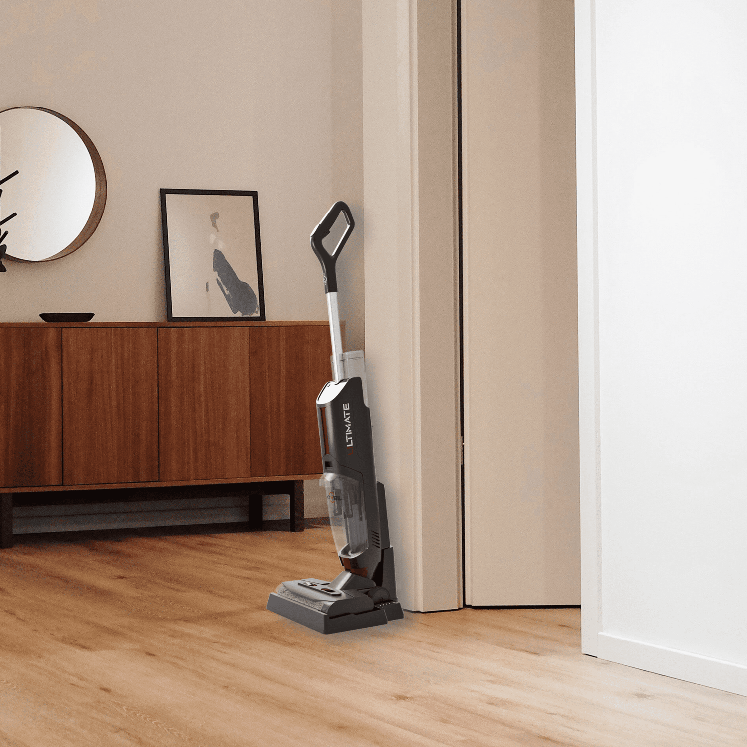 Perfect cleaning along walls and cabinets