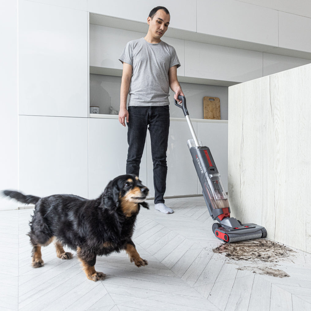 The vacuum cleaner has a smart water supply to the roller in order to prevent puddle formation on the floor.